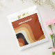Esta antigua bolsa de bienvenida de bodas de los años 70 tiene líneas onduladas en tonos marrones, naranjas, que recuerdan a los años 70 y al estilo de vida hippie. Un diseño retro funky con escritura blanca al lado de las líneas curvadas abstractas. Groove junto con estos divertidos tonos de tierra.
