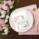 Un fondo blanco. Decorado con oro rosa, flores rosas y azules, pasto pampas. Un niño de peluche sostiene un globo azul y un chica de peluche con un globo rosa. Personalice y agregue los nombres de los padres y la fecha del fiesta.