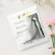 This elegant wedding favor bag features a hand-drawn sketch of a bridal dress on a mannequin, paired with a vintage perfume bottle delicately tinted in soft pink — the only color in an otherwise romantic black-and-white composition. A timeless and sophisticated touch to hold sweets, petals, or keepsakes for your guests.