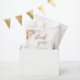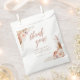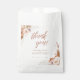 Un elegante bolso de bienvenida con temática bohemia en terracota de otoño con una caligrafía que dice "gracias", acentuado por rosas con acuarela, pasto de pampas y hojas de palma.