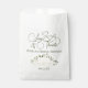 Estas lindas bolsas de favores son una manera maravillosa de agradecer a sus invitados en su ducha de novia. El bonito diseño floral de la moda boho incluye un ramo de rosas acuáticos pintados a mano y flores en tonos blancos, marfil y crema atados con un arco de satén. El texto está escrito con elegantes letras de guiones y dice "Amor y Gracias" con corazones adorables. Hay espacio para que el nombre de la novia sea igual que la fecha del evento. ¡Una forma maravillosa de agradecer a tu familia y amigos por su apoyo mientras te preparas para tu día especial!