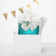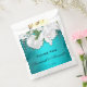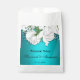Un elegante y sofisticado bolso de bienvenida de boda floral acuática, de color acuático/verde azulado, con un hermoso ramo de rosas en la parte superior. Todos los detalles se pueden personalizar según convenga. Esta bolsa de regalo para los invitados de la boda sería apta para una boda en el jardín, un evento floral, un boda boho, un boda acuático o de temática verde azulada, etc.