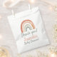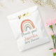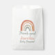 Expresar su gratitud con estilo con esta encantadora bolsa de ducha de bebé, con un arcoiris pintado a mano en pasteles cálidos y terrenales sobre un sentido "¡Gracias!" y el nombre del bebé. Su estilo moderno, inspirado en el boho, su paleta neutral en cuanto a género y su diseño suave y minimalista lo convierten en el toque final perfecto para celebraciones de bebés, favores de fiesta o regalos de apreciación reflexivos. Versátil y moda, este bello acento se coordina sin esfuerzo con reuniones temáticas contemporáneas o vintage, haciendo saber a cada huésped lo especiales que son.