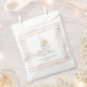 Estos bolsos de bienvenida para bebés con ducha presentan un diseño de rayas beige e intemporal con un ilustracion de oso de peluche de color dulce. Todo el texto es completamente editable. Para una personalización más avanzada de este diseño, simplemente seleccione el botón "Personalizar" de arriba.