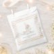 Estos bolsos de bienvenida para fiestas de cumpleaños presentan un diseño de rayas beige marrón y un ilustracion de oso de peluche con acuarela dulce. Todo el texto es completamente editable. Para una personalización más avanzada de este diseño, simplemente seleccione el botón "Personalizar" de arriba.