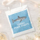 Este bonito diseño presenta una sencilla decoración de fiesta animal azul, una bonita piscina fiesta de agua océano, un pez tiburón acuático animal marino, una fauna salvaje vida marina, peces tiburones de color gris marino, un divertido fiesta de natación de verano, suministros de fiesta para niños de cumpleaños, un postre para pasteles de galletas para una fresca bolsa de papel de verano en el patio trasero, una bolsa de postre caprichosa