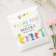 Haz que tu fiesta sea más especial con la Bolsa de Favor del Aniversario del Pals de Plaza Sésamo. Con Elmo, Cookie Monster, Big Bird y Abby Cadabby sobre un vibrante entorno de estilo chalé con coloridos acentos arcoiris, este alegre diseño es perfecto para las celebraciones temáticas de Plaza Sésamo. Una forma divertida y divertida de agradecer a sus invitados y añadir un toque festivo a su evento.