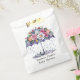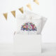Este delicado ilustracion acuático cuenta con un paraguas azul oscuro adornado con vibrantes flores rosadas, rojas y amarillas, que capturan gotas de lluvia azules suaves, un hermoso símbolo de la alegría y las bendiciones que se le han puesto a los futuros padres en su ducha de bebé.