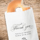 Añada un toque atemporal a su celebración con esta bolsa de bodas, diseñada para complementar su decoración de recepción, sencilla y elegante. Con un estilo clásico en blanco y negro, un guión de caligrafía refinado y una tipografía limpia, este diseño minimalista combina perfectamente belleza y funcionalidad. Con un sincero mensaje de "gracias", estas bolsas son ideales para los favores de los huéspedes y añaden un detalle mínimo y reflexivo a su día especial.