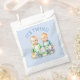 Bolso de baño de bebé de temática azul y verde con dos gemelos. "Son gemelos".
