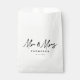 Un simple fondo blanco minimalista y un texto de escritura negro "Mr & Mrs." bolso de favores matrimoniales que se puede personalizar según su apellido y fecha de boda. Personalizar el texto y hazlo propio. Favoritos de boda ideales para un boda moderno y elegante.