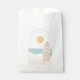 Esta bolsa de surf, agradable y moderna, cuenta con una tabla de planchar de grano de madera en la playa con conchas dispersas.
