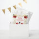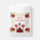 This sweet sixteen favor bag features an elegant gold frame, a beautiful princess with brown hair and a red dress, flowers and a balloon. This is perfect for a sweet sixteen birthday party.