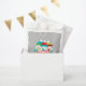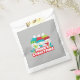 Un trío de adorables hombres de nieve con festivos gorras de invierno y pañuelos, texto de "Feliz Navidad" en fondo gris