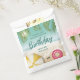 Make party favors extra fun with this cheerful summer-themed favor bag designed by Destei. Teal ocean waves touch the sandy shore while tropical palm leaves and a peek of sun brighten the scene. On the sand, a yellow striped beach umbrella, pink swim ring and black sunglasses bring playful summer vibes. Perfect for holding treats, goodies or small gifts, this favor bag adds a sunny touch to any birthday celebration.