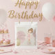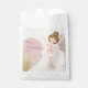 Present your party treats in a truly elegant way with these high-quality ballerina-themed favor bags. The design features a stunning watercolor illustration of a graceful ballet dancer dressed in a delicate pink tutu with intricate gold glitter-style accents. The soft, whimsical background and artistic pastel tones provide a sophisticated aesthetic that perfectly complements a "Twirl into Five" celebration, a first birthday, or any dance-inspired milestone.