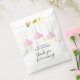 Twinkle twinkle chica pequeña estrella bolso de favores de ducha bebé con nubes rosas lindas y estrellas doradas en cuerdas, sobre un fondo blanco. Diseñado por Thisisnotme©