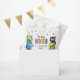 Divertidas y coloridas Bolsas de Favor de la Fiesta del Cumpleaños de los Niños con la temática Monstruo. 'Un monstruo feliz', un mensaje de agradecimiento personalizado y un nombre.