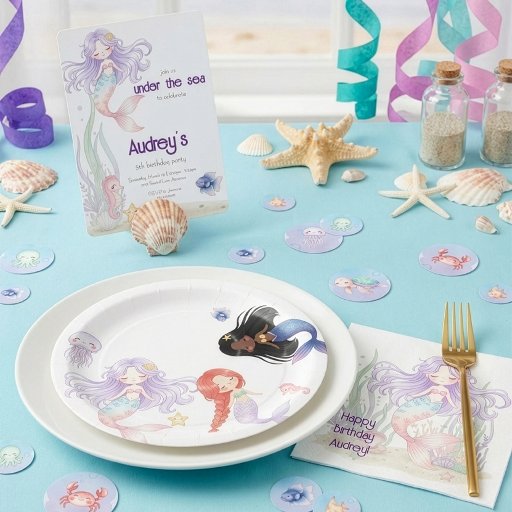 Capture the magic of the ocean with these "Under the Sea" themed party favors featuring a soft pastel palette perfect for a mermaid birthday celebration. All designs are © CALICO LOVE