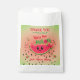 Es una hermosa y linda fiesta de cumpleaños Favor Bag para el chica de la sandía. El diseño presenta una cara personalizado graciosa y linda sonriente sobre una sandía 🍉 rodaja con 🎀 lindo lazo de arco rosado, corazones verdes rojos 💕, semillas de sandía y verde pastel sobre fondo verde rosa. Puede cambiar fácilmente el texto y el color haciendo clic en la opción de personalización, y celebrar su pequeña fiesta de cumpleaños de chica dulce 🥳 🎉.