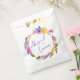 Elementos: guirnaldas florales tropicales que rodean sus nombres y detalles. Los nombres están en una escritura caprichosa, mientras que los detalles están en una fuente moderna sans serif. Colores: púrpura, rosa, amarillo, verde, orquídea, ciruela, magenta, fucsia, limón. Temas: brillante, tropical, playa, destino, romántico, bohemio, alegre, moderno, informal. Colección: Colección de Bodas Vibrante Casual Magenta Violeta Amarillo Tipo de producto: Bolsa de Favoritos