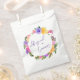 Elementos: guirnaldas florales tropicales que rodean sus nombres y detalles. Los nombres están en una letra cursiva caprichosa, mientras que los detalles están en una tipografía sans serif moderna. Colores: púrpura, rosa, amarillo, verde, orquídea, ciruela, magenta, fucsia, limón. Temas: brillante, tropical, playa, destino, romántico, bohemio, alegre, moderno, informal. Colección: Colección de Bodas Vibrante Casual Magenta Violeta Amarillo. Tipo de producto: Bolsa de Favor