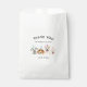Bolso de favores adecuado para la fiesta de cumpleaños del tema del cachorro de su hijo. Ilustracion de 4 perros (dálmata, beagle, pit bull terrier) con gorras fiestas. El texto de arriba dice "gracias por venir a mi fiesta". Agregue el nombre de su hijo bajo el ilustracion.