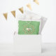 Las fantásticas bolsas de favores para la ducha de bebé cuentan con una linda corona de abejas y flores con texto de personalizable sobre fondo verde.