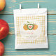 Envíe a sus huéspedes a casa con un dulce recordatorio de su día especial usando esta encantadora bolsa de favores de la colección "La Manzana de nuestro Ojo". Con un trío dulce de manzanas verdes y amarillas estampadas con un detalle de corazón rojo sobre un suave fondo de marfil, esta bolsa puede ser personalizada con el nombre de la futura madre para un toque cuidadoso. El estilo de inspiración otoño combina perfectamente con las invitaciones y la decoración fiesta. Ideal para recibir golosinas, pequeños regalos o keepsakes, es una deliciosa adición a un huerto neutral de género o a una ducha de temática rústica.