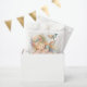 Whimsical floral dulce sueños de chica de hadas dormido con el pelo rubio y una frondosa corona de flores. El nombre personalizado de su hijo está escrito en un guión elegante con letras a mano con fondo de cinta de melocotón.