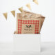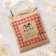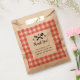 El toque final perfecto para una fiesta de compromiso I Do BBQ o para un favor de cena de ensayo, esta bolsa de favores tiene el monograma de la pareja entre las herramientas de parrilladas y un mensaje personalizado todo con un alegre patrón de manta de picnic rojo.