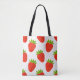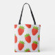 Bolsa blanca con patrón de fruta de fresas rojas. Diseño plano.