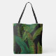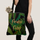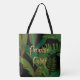 Terreno negro con hojas verdes, marrones, verde azuladas y coralinas y letras doradas. Las hojas de palmera pintadas con color de agua crean esta bolsa de playa inspirada en la brisa hawaiana. Esta serie de diseños le agregarán un toque de Aloha a su vida. ¡Mahalo y disfruta el paraíso! La parte delantera de la bolsa de playa tiene las palabras y se revierte al diseño sin las palabras.