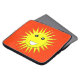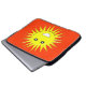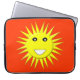 Esta impresionante bolsa de ordenador portátil presenta un sol amarillo sonriente brillante que garantiza que sonríes incluso en los días más miserables. Está sobre un fondo rojo-caluroso y tiene una gran boca de carita blanca y enormes ojos negros con pupilas blancas.