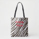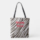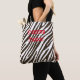 Este diseño presenta un patrón de impresión de cebra marrón y blanco en ambos lados y se mezclaría con cualquier equipo de compras. El texto de ambos lados puede cambiarse para adaptarlo a sus necesidades.