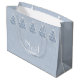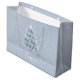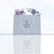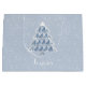El diseño Joyoux Noel en azul pastel Una bolsa de regalo con árboles de Navidad recortados de plata, y un fondo de nevada. Diseñado pensando en tus regalos de vacaciones.