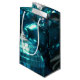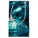 Bolsa de regalo con una colección elegante de adornos de Navidad azules y plateados brillantes. Un diseño personalizable para que lo personalices con tu propio texto, imágenes e ideas. Imagen creada utilizando una fotografía original y técnicas digitales.