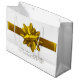 Lazo dorado y su nombre se muestran en esta elegante bolsa de regalo. Textos fáciles de cambiar