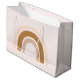 Nuestro arcoiris de tres bandas en número en rosa sobre el fondo rosa más pálido.