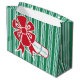 Un gran arco rojo decora esta bolsa de regalo de vacaciones a rayas verdes y acuáticas. Esta bolsa es genial para todas las edades. El diseño es de arte original.