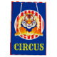 ¡Perfecto para casi cualquier celebración! ¡¡Un audaz Tigre Circus salta a través de un anillo de fuego con grandes franjas rojas y blancas!! Texto: CIRCUS Visita PartyFactory Colecciones para igualar los suministros de los fiestas Circus Tiger!