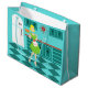 Con esta Bolsa de Regalo de Cocina Retro, puedes tomar tu pastel y comerlo también. Este kitsch dibujo de arte minimalista cuenta con una perfecta ama de casa de los años 50, en su moderna cocina de mediados de siglo. El bonito panadero lleva puesto un vestido floritario, verde y un delantal blanco con detalles rojos. Ni un pelo en su rubia cabeza está fuera de lugar. De un lado, ella está sosteniendo el fruto de su trabajo —una preciosa tarta de fruta coronada por retretes. Una mirada y sabrás que sus costras tortas escurridas no son iguales a ninguna. Se encuentra en una pista de aquagym y verde azulada de chiringuito, lo suficientemente limpio como para comer. Contra una pared acuática, vemos una camarilla verde azulada con adornos de agua, una contraparte roja, crías de cajón rojo y acentos de starburst negro. Un reloj rojo estelar está colgado en la pared. A un lado, un frigorífico blanco con mangos de plata está muy a la última. Al menos, el refrigerador era el más moderno de los años 50. Ahora, es simplemente un sueño. Ya sea que seas Suzie Homemaker o simplemente tengas una afinidad por todas las cosas vintage, seguro que te encantará esta riquísima porción de Americana.