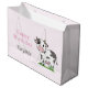 Bolsa de Regalo de Cumpleaños Rosa con una linda vaca de estilo personalizado para un paquete de regalo personalizado. Sólo por diversión, una cara de vaca linda está impresa en la parte de atrás.