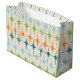 Vintage. Geometría. Estallidos. Si te gusta cualquiera de esas palabras, esta bolsa de regalo de Starbursts Geométricos retro Vintage es para ti. Este moderno diseño de mediados de siglo presenta un fondo crema con hileras de estrellas turquesa, verde limón, naranja y verde azulada. Este diseño moderno se combina maravillosamente con el patrón retro de móvil atómico de Strange Little Onion y los productos Retro Grid y Starburst. Devuélvate el kitschy con este patrón increíblemente divertido. ¡Adelante, alcancen los estallidos!