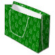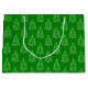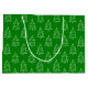 Una gran bolsa de regalo construida con un patrón blanco de árbol de Navidad sobre un fondo verde. Personalizar el color de fondo verde, el tamaño del patrón entre otras opciones.