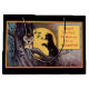 La escena de Halloween es una bolsa de regalo con un búho, un gato negro y un poema pequeño.