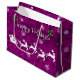 Bolsa de Regalos de Magenta Santa con los regalos de sus Navidades. El diseño de la bolsa de regalo incluye el trineo de Santa adornado con bayas huecas y tirado por su reno contra un fondo magenta con copos de nieve cayendo. También hay artículos de regalo y de vacaciones disponibles con este diseño.