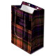 Rellene sus dulces y regalos de Halloween con estilo con esta exclusiva bolsa de regalos de Tartan Halloween. Presenta un patrón de moda naranja, morado y manta verde, con un audaz mensaje violeta de "Feliz Halloween" en el frente. Esta bolsa de tamaño medio es una forma perfecta y elegante de presentar un regalo, añadiéndole un toque de elegancia.