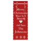 Perfecta botella de vino de temporada roja y blanca o gran bolso de regalo estrecho que dice Feliz Navidad Aquí es A una temporada de (30h) de (30h) y paz El ______, para ser personalizado con tu apellido