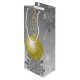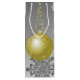 Regale a sus amigos y a su familia una excelente botella de vino esta temporada navideña con una Bolsa de Regalo Ornament de Oro. El diseño de la bolsa de regalo presenta un adorno dorado con un fondo de gradiente gris adornado con copos de nieve en caída. También hay artículos de regalo y de vacaciones disponibles con este diseño.